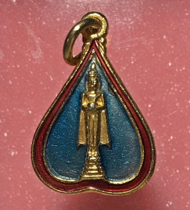 เหรียญใบโพธิ์ลงยา หลวงพ่อบ้านเเหลม วัดเพชรสมุทร ปี2525